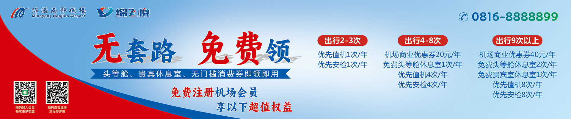 Copyright (c) 2019 綿陽(yáng)機(jī)場(chǎng)(集團(tuán))有限公司 聯(lián)系地址: 綿陽(yáng)市經(jīng)開(kāi)區(qū)機(jī)場(chǎng)東路6號(hào)